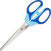 Канцелярские ножницы (офисные) Attache серии Ergo&Soft эргономичного дизайна. Лезвия выполнены из высококачественной нержавеющей стали. Симметричные кольца синего цвета с вставками из резины предотвращают скольжение пальцев. Двухсторонняя заточка лезвий.