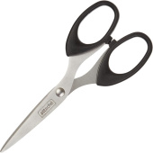 Канцелярские ножницы Attache классического дизайна с тупоконечными лезвиями, изготовленными из стали. Пластиковые кольца эллиптической формы черного цвета обеспечивают комфортную работу с материалами любой плотности: бумага, картон, ткань.