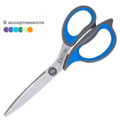 Ножницы канцелярские бренда Deli универсального назначения — один из необходимых помощников как дома, так и в офисе при работе с бумагой и другими материалами. Лезвия изготовлены из нержавеющей стали, с возможностью двухсторонней заточки. Пластиковые ручки эргономичной формы снабжены прорезиненной вставкой для удобства пользования. Длина лезвий: 110 мм. Длина ножниц: 170 мм. Форма лезвий: тупоконечные. Вид колец: разные.