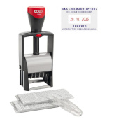 Металлический каркас, обрамлен пластиком, автоматическое окрашивание текста. Предназначен для работы с повышенной нагрузкой. Мягкость и бесшумность хода, легкий доступ к колесам смены даты. Дата цифрами (01.01.2020) — в центре, вокруг даты рифленая пластина для набора текста. Рассчитана на 12 лет, включая текущий год. Ленты датерных механизмов закрыты специальным кожухом, который гарантирует абсолютную чистоту в процессе использования. В комплекте: датер с рифленой пластиной, пинцет, две кассы букв: TypeSet A (арт. 73899), TypeSet В (арт. 73900), двухцветная сменная подушка. Крепление символов на одной ножке, экспресс-набор текста. Максимальное количество знаков в строке: основной шрифт — 28, большой шрифт — 19. Размер шрифта: дата — 4 мм, основной шрифт — 2.2 мм, большой шрифт — 3.1 мм.