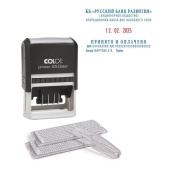 Датер автоматический самонаборный Printer 55 Dater Bank Set. Надежный пластиковый корпус с автоматическим окрашиванием текста. Подходит для работы в бухгалтерии, на складе, в банке. Дата цифрами (01.01.2020) — в центре, вокруг даты рифленая пластина для набора текста. Рассчитана на 12 лет, включая текущий год. В комплекте: датер с рифленой пластиной, две кассы букв: TypeSet A (арт. 73899), TypeSet В (арт. 73900), двухцветная сменная подушка, пинцет. Крепление символов на одной ножке, экспресс-набор текста. Максимальное количество знаков в строке: основной шрифт — 37, большой шрифт — 28. Размер шрифта: дата — 4 мм, основной шрифт — 2.2 мм, большой шрифт — 3.1 мм.