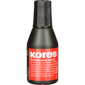 Штемпельная краска Kores на водно-масляной основе в пластиковом флаконе объемом 28 г. Цвет черный. Дозатор обеспечивает равномерное нанесение на штемпельную подушку. Подходит для использования со всеми видами резиновых штампов. Назначение: для бумаги.