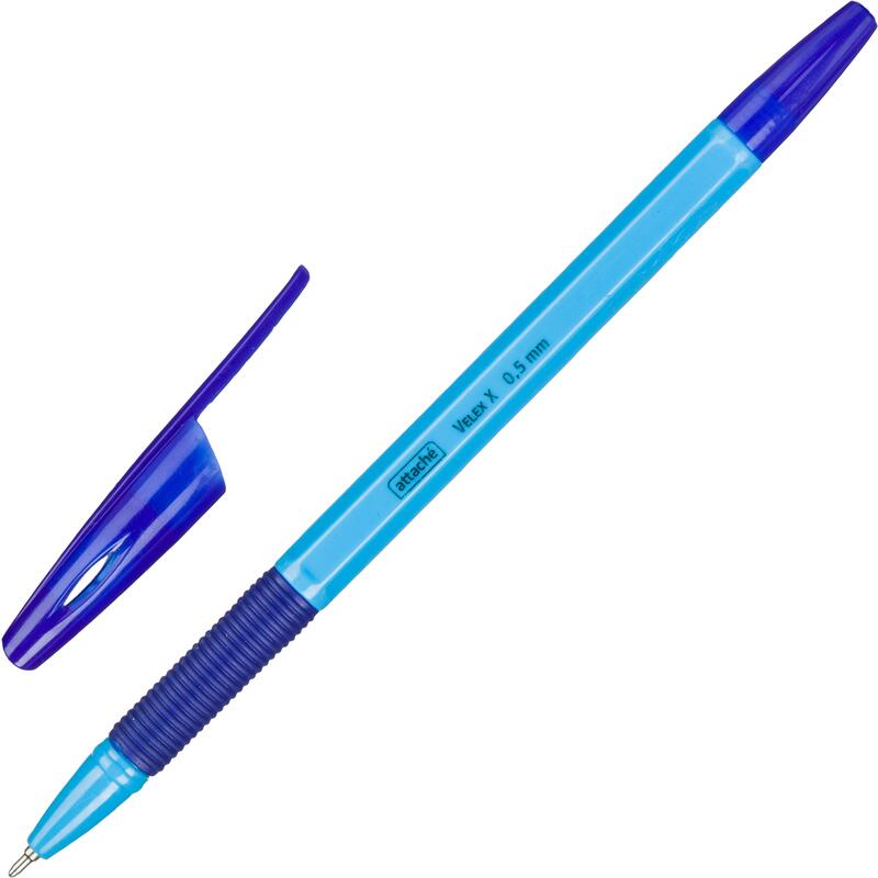 Ручка шариковая неавтоматическая Attache Velex X синяя (толщина линии 0.5 мм, корпус голубой)
