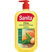 Средство для мытья посуды Sanita Мандарин и белый чай гель 900 г с дозатором.