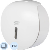 Корпус диспенсера изготовлен из прочного ABS-пластика. Для использования подойдет туалетная бумага с диаметром рулона не более 23,5 см и диаметром втулки не менее 65 мм. Закрытый внутри корпуса рулон туалетной бумаги обеспечивает высокий уровень гигиены. Большая вместимость диспенсера позволяет сокращать расходы на его обслуживание, благодаря специальному окошку удобно отслеживать наличие туалетной бумаги.