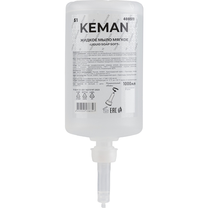 Картридж с жидким крем-мылом для рук и тела Keman S1 для дозаторов S1 1000 мл