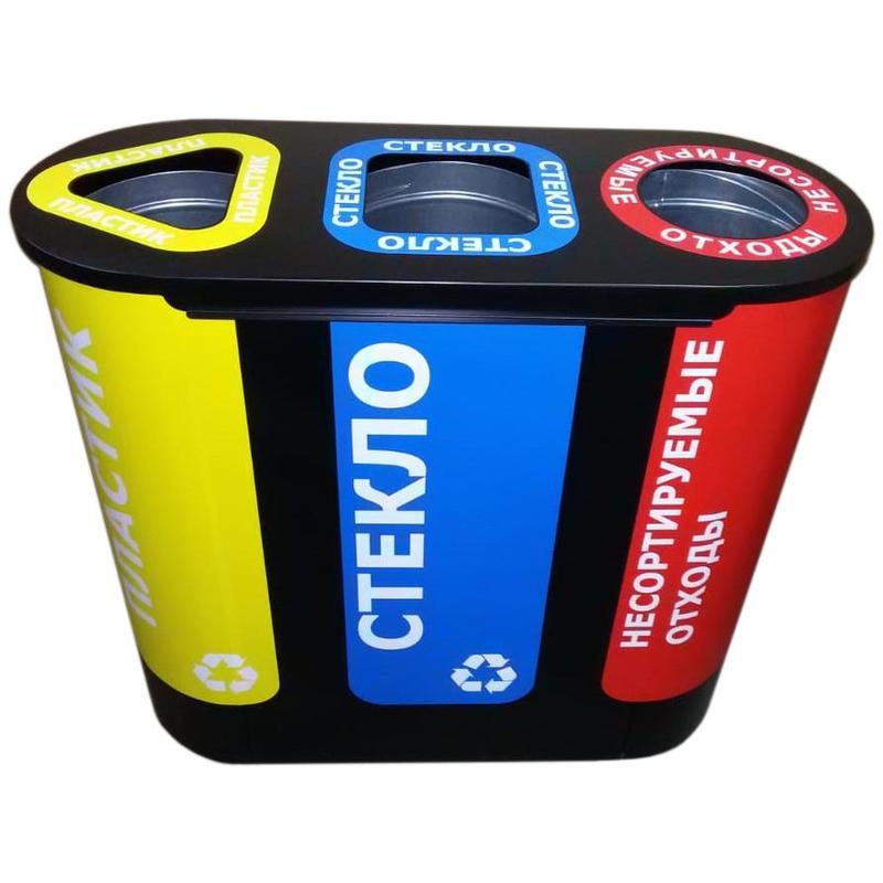 Урна для раздельного сбора мусора Акцент 3 черная 3-секционная 3х48 л