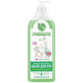 Мыло жидкое Synergetic антибактериальное Лемонграсс и мята 1 литров. Антибактериальное увлажняющее мыло Synergetic Лемонграсс и мята — биоразлагаемое жидкое мыло для бережной очистки рук от любых загрязнений и эффективной нейтрализации неприятных запахов. Комбинация мягких растительных К-тензидов, морской соли и натуральных эфирных масел чайного дерева, эвкалипта, тимьяна, мяты и лемонграсса гарантируют пролонгированный антибактериальный эффект. Мягкие биоразлагаемые тензиды, полученные из растительных масел, превосходно удаляют загрязнения с кожи, не вызывая ее раздражения. Натуральный растительный глицерин в составе мыла защищает кожу рук от сухости и обеспечивает длительное увлажнение кожи. Мультифункциональный компонент софоролипид заботится о микробиоме кожи. Комплекс витаминов A, E, F в составе мыла повышает сопротивляемость кожи рук к вредным воздействиям окружающей среды. Жидкое мыло подходит для септических установок. Попадая в среду септика, оно ’понятно’ для микроорганизмов и без труда распадается на простые соединения.