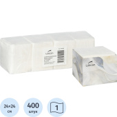 Салфетки бумажные Luscan 1-слойные 24×24 см белые (4 пачки по 100 листов+спендер) Однослойные салфетки Luscan белого цвета с тиснением сложены вчетверо, могут использоваться в повседневном быту, на офисной кухне, на фуршетах и предприятиях общественного питания. Поставляются упаковками из 4 пачек по 100 листов. Изготовлены из 100% целлюлозы. Размеры развёрнутой салфетки: 24×24 см.