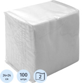 Салфетки бумажные сервировочные 2-слойные 24×24 см (100 листов в пачке) Двухслойные салфетки выполнены в белом цвете. Прекрасно подходят для повседневного использования, в повседневном быту, на офисной кухне, на фуршетах и различных увеселительных мероприятиях, в столовых, в кафе и т.д. Размеры развёрнутой салфетки: 24×24 см. Изготовлены из 100% целлюлозы. Поставляются пачками по 100 шт.