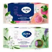 Влажные салфетки Aura освежающие для всей семьи. В экономичной упаковке содержатся 63 салфетки. Освежающие влажные салфетки Aura эффективно очищают, надолго освежают и тонизируют. В составе пропитывающего салфетки лосьона — экстракт ромашки, обладающий противовоспалительными свойствами. Салфетки обладают приятным ароматом. Удобны в применении, незаменимы в дороге и на отдыхе, подходят для детей. Меры предосторожности: только для наружного применения. При обнаружении чувствительности к компонентам — прекратить использование. Не обрабатывать раны и слизистые оболочки. Материал: нетканое полотно спанлейс (20% вискоза, 80% ПЭ). Состав: Aqua, Propylene Glycol, Glycerin, Cocoamidopropil Betain, Polysorbate 20, C hamomilla Recutita Flower Extract, Dipropylene Glycol, Phenoxyethanol, 2-Bromo-2-Nitropropane-1,3-Diol, Trideceth-9, Iodopropynyl Butylcarbamate, Citric Acid, Parfum, Hexyl Cinnamal, Butylphenyl Methylpropional. Из-за высокого содержания воды в составе, товар подвержен замерзанию при температуре ниже −5С. При оттаивании, товар не теряет качество и сохраняет все ключевые характеристики.
