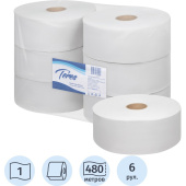 Бумага туалетная в рулонах Терес Эконом макси 1-слойная 6 рулонов по 480 метров (артикул производителя T-0014).
