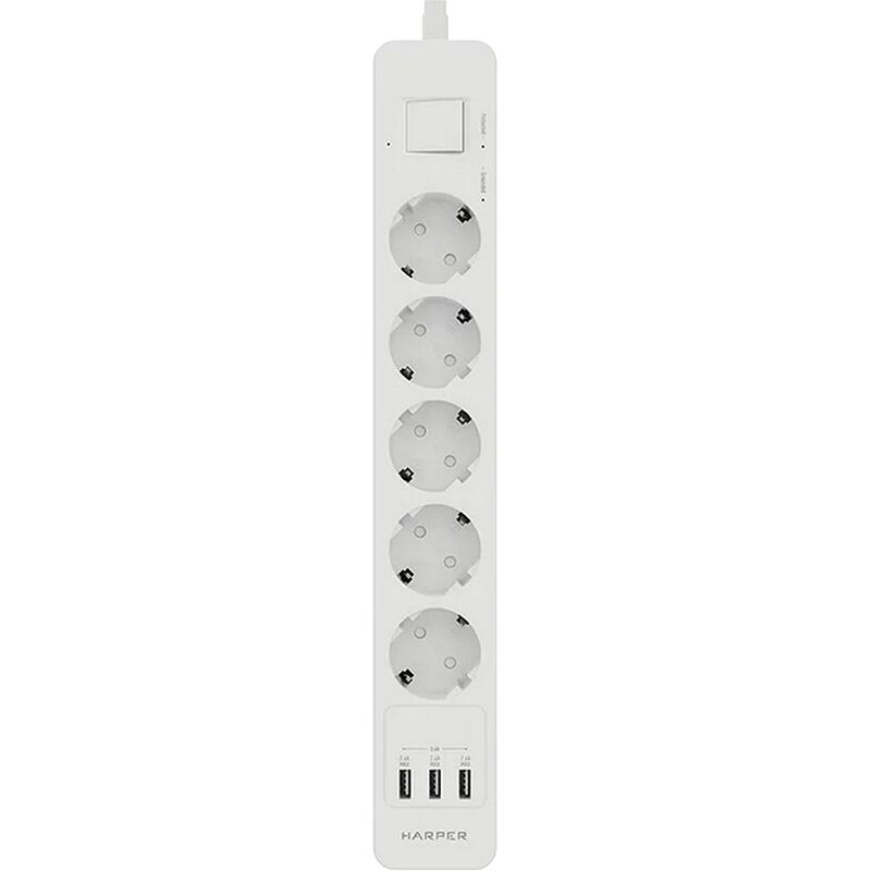 Сетевой фильтр Harper UCH-560 на 5 розеток + 3 USB 3 метра белый (H00003014)