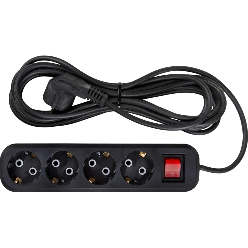 Удлинитель Атлант ПВС 4 розетки 7 м с заземлением и выключателем чёрный (80024)