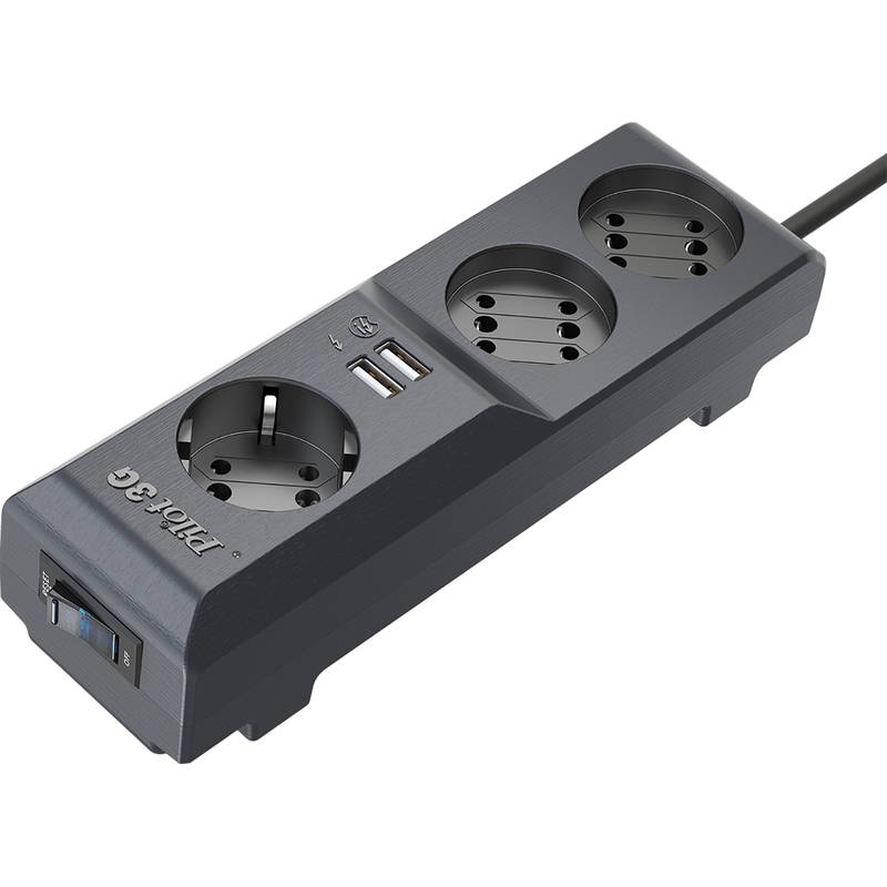 Сетевой фильтр Progix PG349 на 3 розетки 10 метров с заземлением и выключателем чёрный