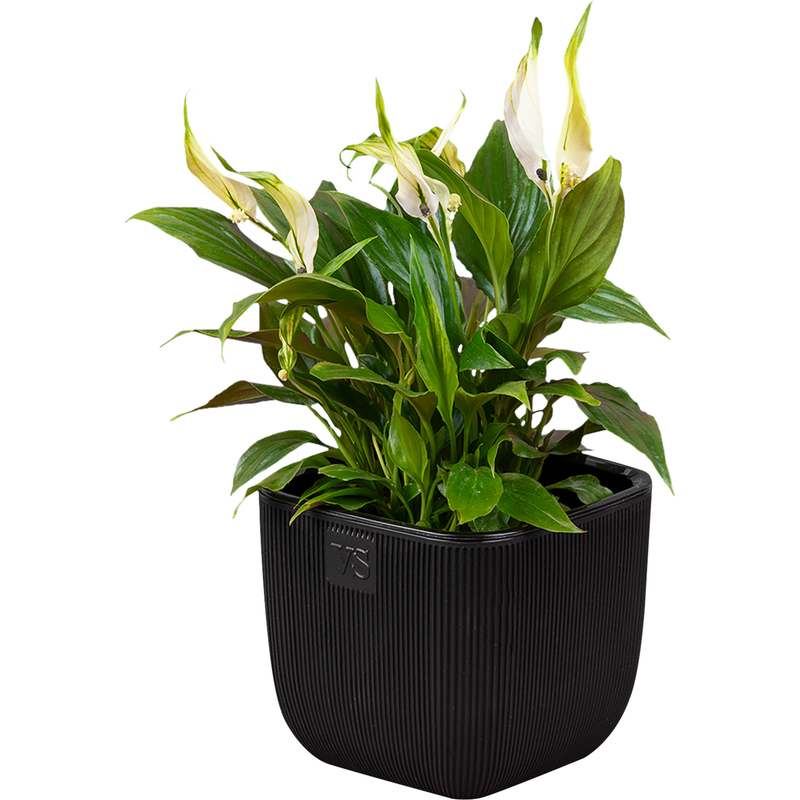 Растение Спатифиллум белый цветок в квадратном кашпо белого цвета (30 см)