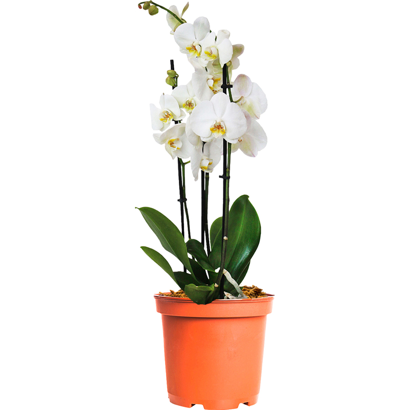 Растение Орхидея Фаленопсис 60 см в белом кашпо D18 см