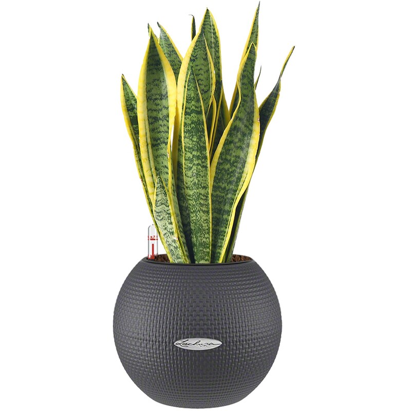 Растение Сансевиерия Лауренти Puro с круглым горшком серого цвета и системой автополива (30 см)