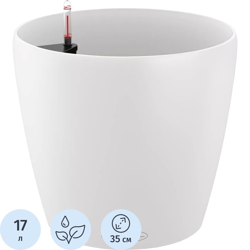 Кашпо с автополивом Lechuza Classico Color 35 17 л бархатный белый (32.5x34.5 см)