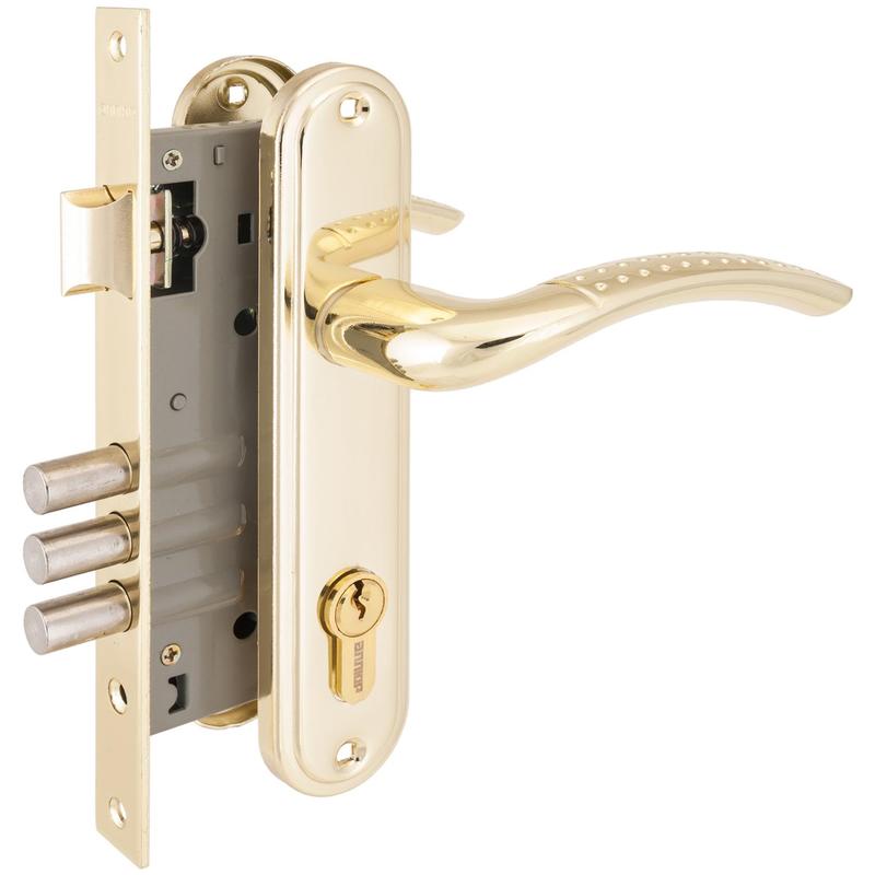 Замок врезной дверной F01 85 золотистый