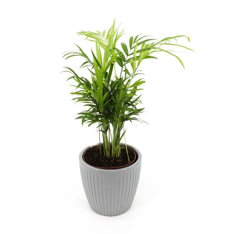 Растение Хамедорея Элеганс в круглом кашпо белого цвета (40-45 см)