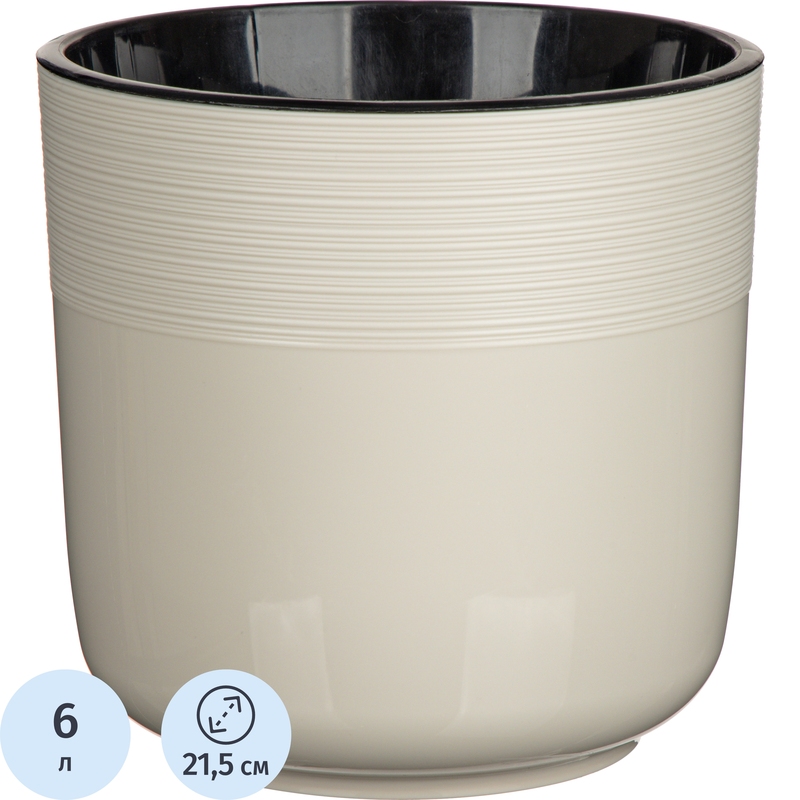 Горшок для цветов Idiland Nature 6 л с внутренней вставкой 4 л бежевый (21x21.5 см)