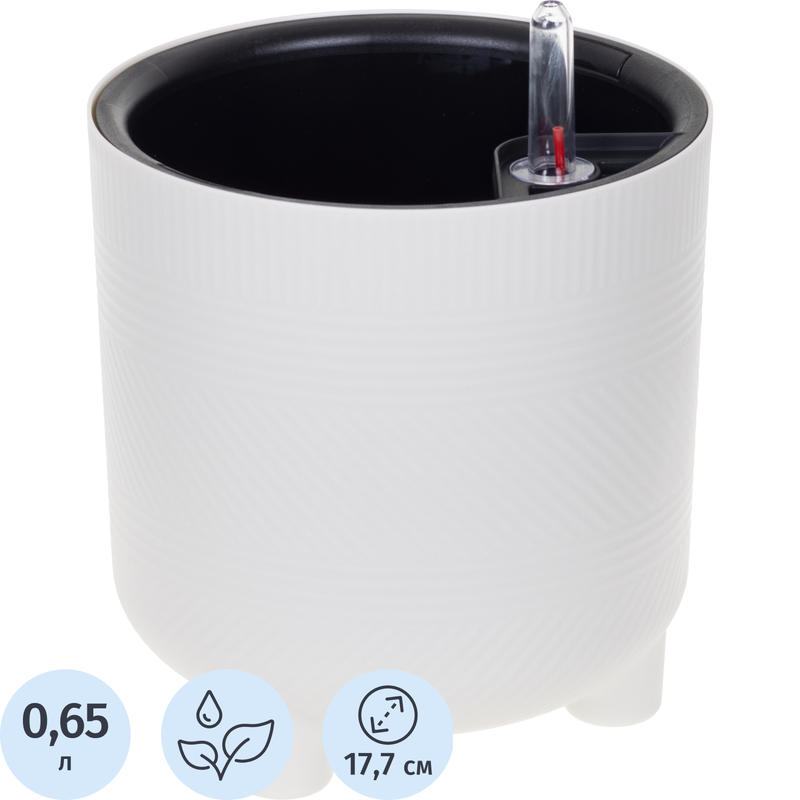 Кашпо с автополивом Idea Шэнк D 3.6 л с внутренней вставкой 2 л белый ротанг (23x17.7 см)