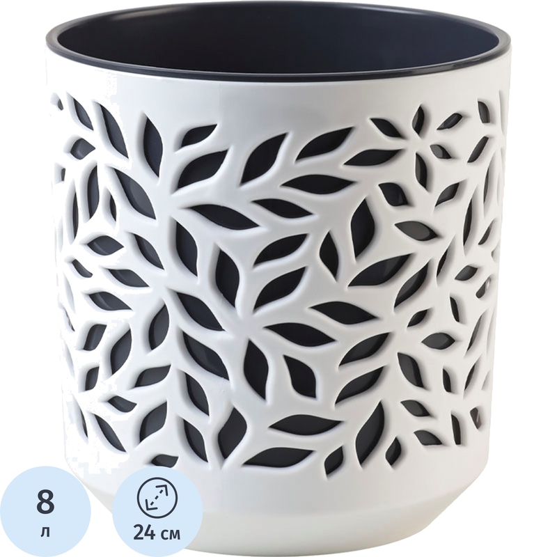 Кашпо La decoro Leaves 8 л с внутренней вставкой 8 л белый/антрацит (25x24 см)