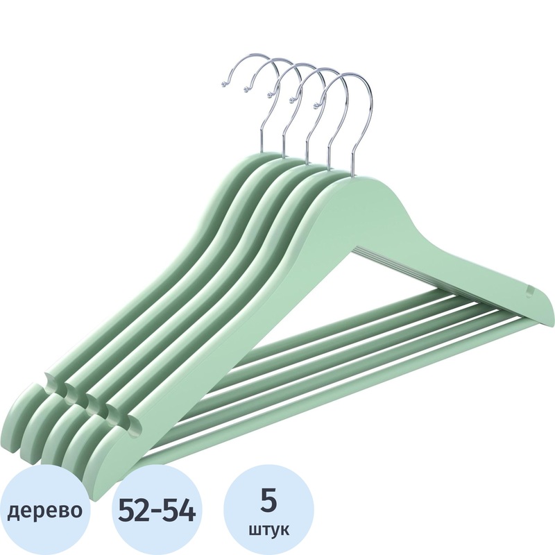 Вешалка-плечики универсальное CLH-227 дерево/металл мятная (размер 52-54, 5 штук в упаковке)