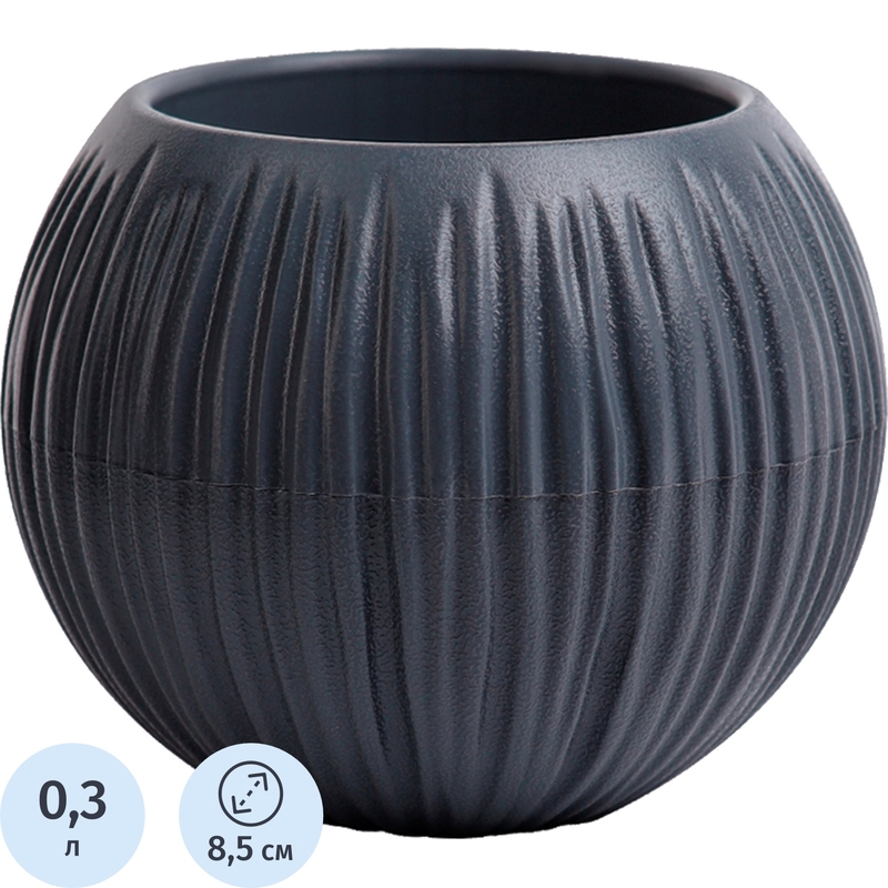 Кашпо с поддоном La decoro Сфера Мини 0.3 л антрацит (9.7x8.5 см)