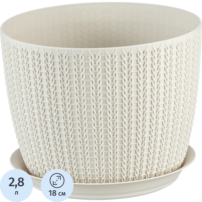 Кашпо с поддоном М-пластика Вязание 2.8 л бежевый (14.5x18 см)
