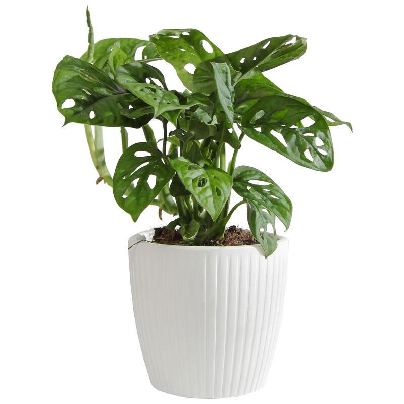 Растение Монстера Обликва Манки Маск в круглом кашпо белого цвета (25-35 см, РС113.8)