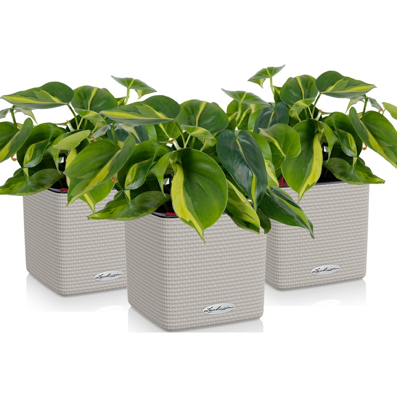 Набор растений Филодендрон Бразил 20 см в кашпо песочно-коричневого цвета D14 см