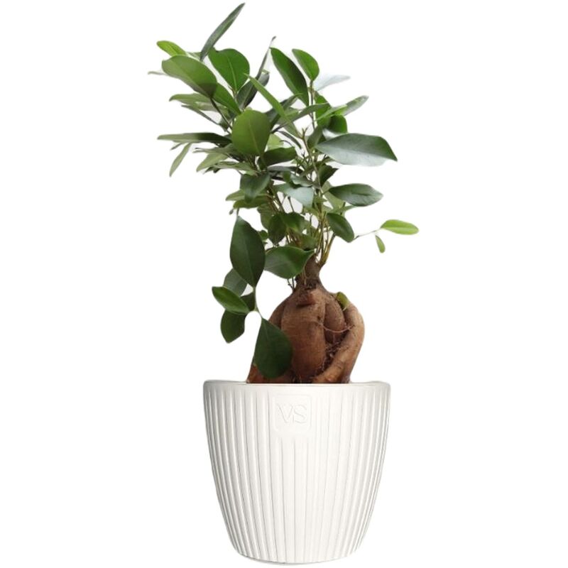 Растение Фикус Микрокарпа в круглом кашпо белого цвета (35 см)