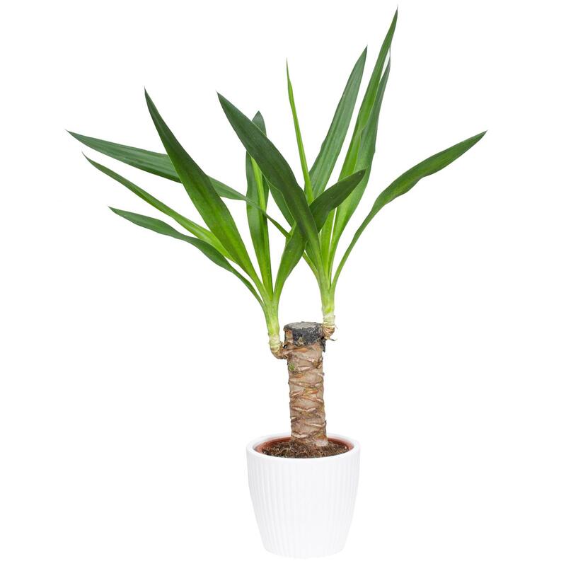 Растение Юкка в круглом кашпо белого цвета (40-45 см)