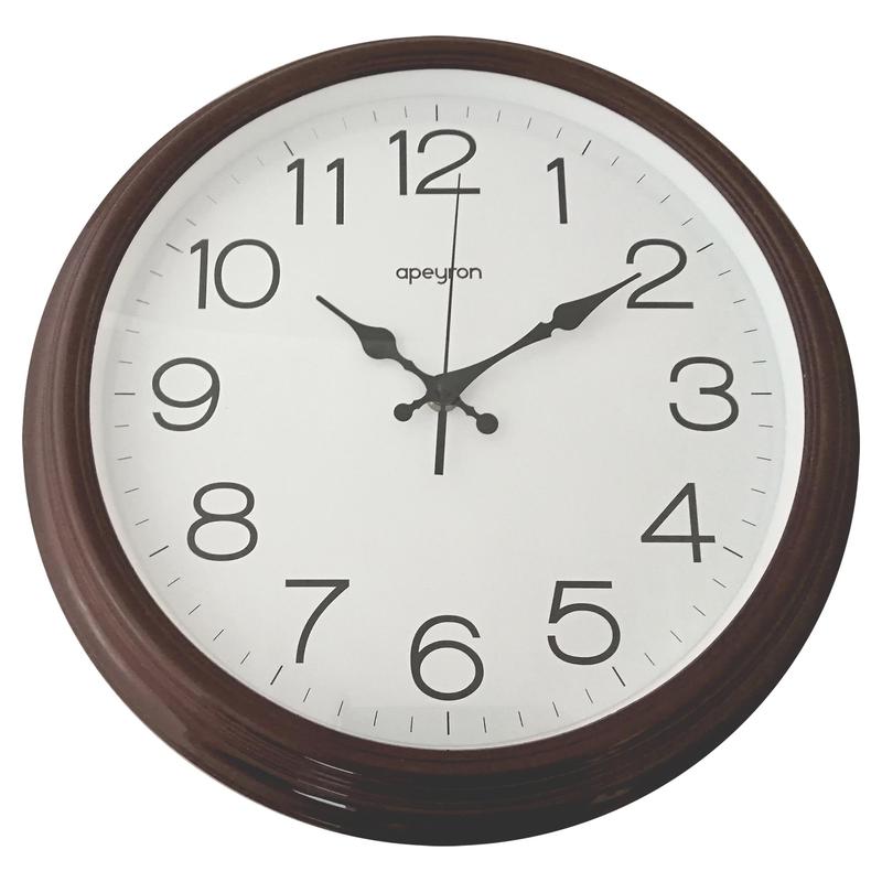 Торговая марка Apeyron Тип настенные часы Страна происхождения Россия Тип питания батарейки Типоразмер элемента питания AA LR6 (пальчиковые) Материал корпуса пластик Схема вложения 10 шт. Цвет корпуса коричневый Форма круглая Гарантийный срок 12 мес Элементы питания в комплекте нет Размер, см 35x35x4 Особенности нет Сезонность универсальная Размер циферблата 33x33 см Вывод времени стрелочный Защита циферблата стекло Вид цифр арабские Цвет циферблата белый Механизм кварцевый -