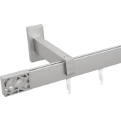 Декоративный карниз с функционалом профиля. Усиленная конструкция держателей предполагает подвес плотных, тяжелых портьер, управление которыми осуществляется бесшумно благодаря легкому скольжению бегунков по профилю. При этом, держатель не является препятствием для полного перекрытия оконного проема, так как обеспечивает ход штор от стены до стены. Современный прямоугольный дизайн профиля органично дополняется наконечником стильной геометричной формы.