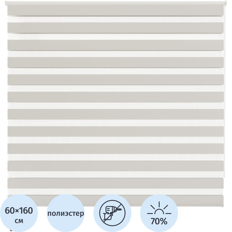 Торговая марка Комус Мебель Цвет белый Страна происхождения Россия Материал полиэстер Гарантийный срок 12 мес Ширина, см 60 Высота, см 160 Сборка мебели сборка не требуется Светопроницаемость 70% Монтаж без сверления да Blackout нет -