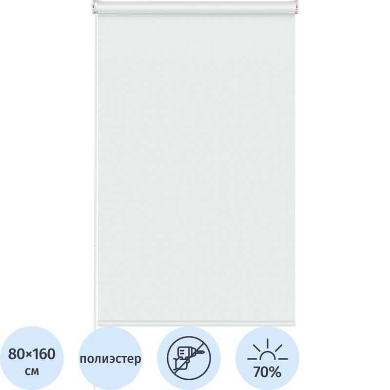 Торговая марка Комус Мебель Цвет белый Страна происхождения Россия Материал полиэстер Гарантийный срок 12 мес Ширина, см 80 Высота, см 160 Сборка мебели сборка не требуется Светопроницаемость 70% Монтаж без сверления да Blackout нет -