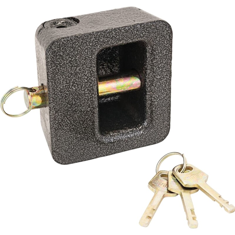 Замок навесной, корпус замка полностью закрывает дужку. Чугунный корпус. Стальная закаленная дужка. Дисковый механизм секрета, 3 ключа с двойной нарезкой секрета. Конструкцией замка полностью исключен доступ к дужке, что защищает замок от вандализма и взлома. Форма корпуса замка исключает попадание воды в механизм секрета, не вызывая проблем с доступом в помещение в зимнее время. -