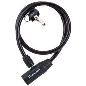 Замок навесной с тросом. Материал корпуса — сталь в пластиковом кожухе. Стальной трос — в пластиковой оплетке (8 мм — диаметр, 650 мм — длина). Цилиндровый механизм секрета, в комплекте 2 английских ключа. Предназначен для запирания дверей, ворот, а также для предотвращения хищения велосипедов, детских колясок, санок, лодочных моторов и других предметов.