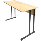 Столешница и фронтальная панель стола выполнены из ЛДСП 16 мм. Торцы столешницы закрыты противоударной кромкой ПВХ толщиной 2 мм. Торцы фронтальной панели закрыты противоударной кромкой ПВХ толщиной 0.5 мм. Металлический каркас выполнен из профиля квадратного сечения 25×25 мм с толщиной стенок не менее 1.2 мм и покрыт порошковой краской, стойкой к химическим и механическим воздействиям. На свободных концах труб установлены заглушки из ударопрочных полимеров. Каркас стола имеет полимерные подпятники, предотвращающие повреждение напольного покрытия. Вся крепежная фурнитура на металлокаркасах скрыта внутри трубы для продления срока службы изделия. Переднее крепление на столешнице скрытое (резьбовые втулки и болты М6). Заднее крепление на столешнице сквозное (мебельный болт с гайкой). Фронтальная панель крепится к каркасу на мебельные болты с гайками. В конструкции предусмотрено 2 крючка для портфелей. Стол имеет цветовую маркировку в соответствии с ростовой группой.