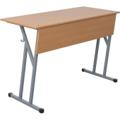 Парта. Столешница и фронтальная панель стола выполнены из ЛДСП толщиной 16 мм. Торцы столешницы закрыты противоударной кромкой ПВХ толщиной 2 мм. Торцы фронтальной панели закрыты противоударной кромкой ПВХ толщиной 0,5 мм. Переднее крепление на столешнице скрытое (резьбовые втулки и болты М6). Заднее крепление на столешнице сквозное (мебельный болт с гайкой). Фронтальная панель крепится к каркасу на мебельные болты с гайками. Металлический каркас выполнен из профиля прямоугольного сечения 25×25 мм с толщиной стенок не менее 1,2 мм и покрыт порошковой краской, стойкой к химическим и механическим воздействиям. На свободных концах труб установлены заглушки из ударопрочных полимеров. Каркас состоит из двух цельносварных боковин. Каждая боковина состоит из опоры столешницы, двух наклонных вперед на 10 градусов параллельных стоек и опоры стола. Опора столешницы и наклонные стойки соединены поддерживающим элементом, образуя треугольник, что придает столу дополнительную жесткость и устойчивость. Стол имеет полимерные подпятники, предотвращающие повреждение напольного покрытия. В конструкции предусмотрено 2 крючка для портфелей. Стол имеет цветовую маркировку в соответствии с ростовой группой.