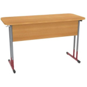 Двухместный ученический стол с закругленными углами, регулируемый по высоте. Опоры стола изготовлены из круглой трубы, регулируются от третьей до седьмой ростовой группы без специального инструмента. Стол подходит для начальной, средней и старшей школы. Столешница ЛДСП толщиной 16 мм обработана кромкой ПВХ 2 мм. Цвет столешницы бук.
