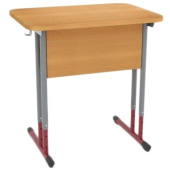 Одноместный ученический стол с закругленными углами, регулируемый по высоте. Опоры стола изготовлены из круглой трубы, регулируются от третьей до седьмой ростовой группы без специального инструмента. Стол подходит для начальной, средней и старшей школы. Столешница ЛДСП толщиной 16 мм обработана кромкой ПВХ 2 мм. Цвет столешницы бук.