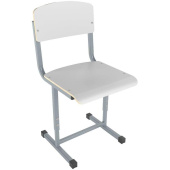 Стул ученический, сиденье и спинка изготовлены из гнутоклеенной фанеры толщиной не менее 8 мм, покрытой цветным декоративным пластиком. Металлический каркас выполнен из профиля квадратного сечения 25×25 мм и 20×2 0мм с толщиной стенок не менее 1,2 мм и покрыт порошковой краской, стойкой к химическим и механическим воздействиям. На свободных концах труб установлены заглушки из ударопрочных полимеров. Каркас стула имеет полимерные подпятники, предотвращающие повреждение напольного покрытия. Сиденье и спинка крепятся к основанию при помощи мебельных болтов и гаек. Регулировка высоты осуществляется с помощью винтовых соединений с гайкой Эриксона. Вся крепежная фурнитура на металлокаркасах скрыта внутри трубы для продления срока службы изделия. Высота до сидения — 420-500 мм. Высота — 760-840 мм. Стул изготавливается в соответствии с ГОСТ 11016-93. Стул универсальный, соответствует ростовым группам 5-7 и 4-6. Стул имеет цветовую маркировку в соответствии с ростовыми группами.