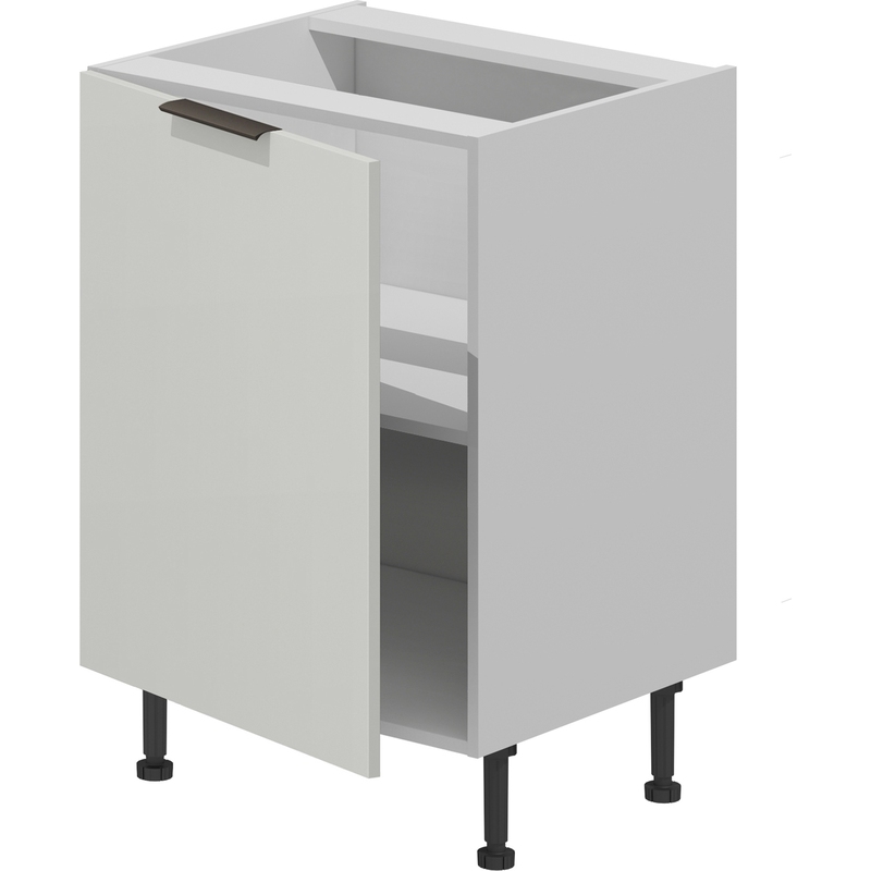 Внимание! Пожалуйста, проверяйте цвет изделия до начала сборки! Цвет на изображении товара в интернет-магазине или в печатном каталоге может отличаться от оригинала из-за особенностей цветопередачи. Шкаф напольный (база) оснащён одной распашной дверью и внутренней полкой. Предназначен для хранения посуды, продуктов и других кухонных аксессуаров. Изготавливается из ЛДСП 16 мм, что обеспечивает прочность и долговечность изделия. Края обработаны кромкой полипропилен 0,45 мм, что делает изделие более устойчивым к повреждениям и придаёт ему аккуратный завершённый вид. Конструкция двери позволяет ей быть как в правом, так и в левом исполнении, в зависимости от места установки ручки. Ручку можно установить в любом месте. Двери оборудованы петлями HAFELE плавного закрывания.