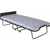 Кровать раскладная Элеонора-М с изголовьем отличный вариант дополнительного или постоянного спального места. Кровать имеет ортопедическое основание из березовых ламелей, которые хорошо поддерживают Ваше тело во время отдыха. Раскладная кровать комплектуется матрасом из полиэфирного волокна, средней жесткости, для надежной фиксации которого имеются липучки, которые крепятся к каркасу раскладушки. Для большего комфорта раскладная кровать Элеонора-М имеет изголовье из ЛДСП и специальный изгиб каркаса в изножье — с такой конструкцией и матрас и подушка никуда не денутся, будьте уверены! Размеры (ДхШхВ) 2020×900×340 мм. Размеры в сложенном состоянии (ДхШхВ) 1140×900×310 мм. Размер спального места (ДхШ) 2020×900 мм. Допустимая нагрузка 140 кг. Вес изделия 17 кг. Основание спального места — ламели. Толщина матраса 90 мм. Наполнитель матраса — холлкон. Материал чехла матраса — полиэфир. Цвет каркаса — черный. Диаметр несущей трубы каркаса 25 мм. Материал каркаса — сталь. Материал изголовья и комплектующих ЛДСП (2 мм). Высота изголовья 300 мм. Цвет изголовья венге.