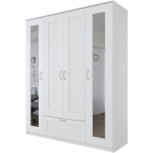 Шкаф Сириус комбинированный для одежды четырехстворчатый, с одним выдвижным ящиком и двумя зеркалами, цвет Белый. Изготовлен из ЛДСП толщиной 16 мм. Крепится к стене. Размер (ШхГхВ) 1560×502×1900 мм.