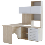 Многофункциональный компьютерный стол КСТ-14 для домашнего кабинета или офиса. Модель сочетает в себе широкий компьютерный стол с размером столешницы 1400 мм, тумба с ящиками, полками и нишей под системный блок. Высокая надстройка имеет открытые полки и два закрытых шкафа. Двери шкафчиков открываются вверх. Внутренний размер ящиков — 456×346 мм. Вместительный — большое количество полочек и ящиков позволяет хранить всю необходимую канцелярию в одном месте. Стильный — впишется практически в любой интерьер и станет его украшением. Широкий — размер столешницы составляет 1400 мм и позволяет поставить не только монитор, но другие предметы, необходимые для работы или учебы. Такая модель компьютерного стола позволяет организовать максимально удобную и функциональную рабочую зону. Изделие выполняется из ЛДСП толщиной 16 мм, края обработаны кромкой ПВХ 0,4 и 2 мм. Задняя стенка — ДВП серого цвета. Ручки выполнены из металла. На столешнице имеется отверстие под провода. В комплект входит заглушка.